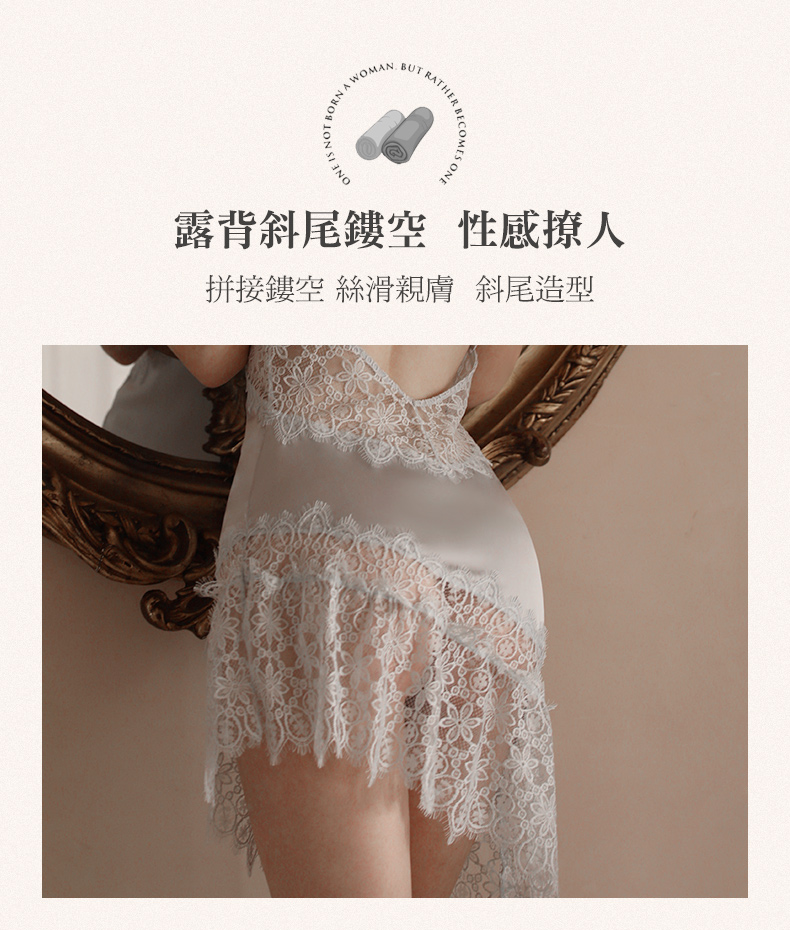 • 鏤空花朵蕾絲斜尾裙擺 華麗性感隨身擺動