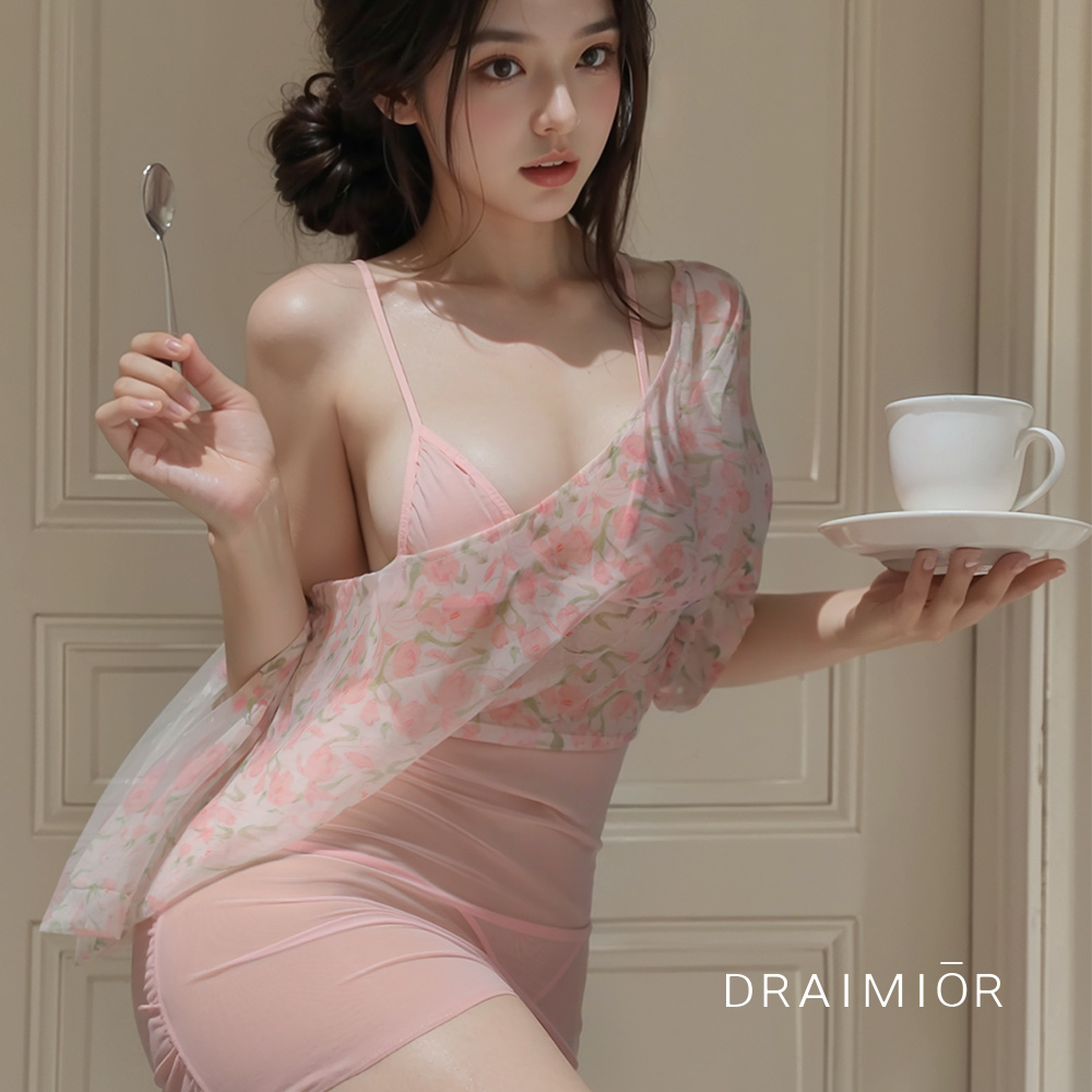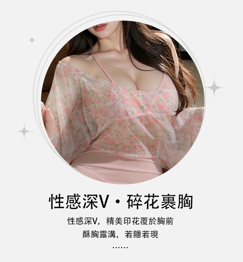 - 飄逸繁花深V純欲透紗美背比基尼套裝