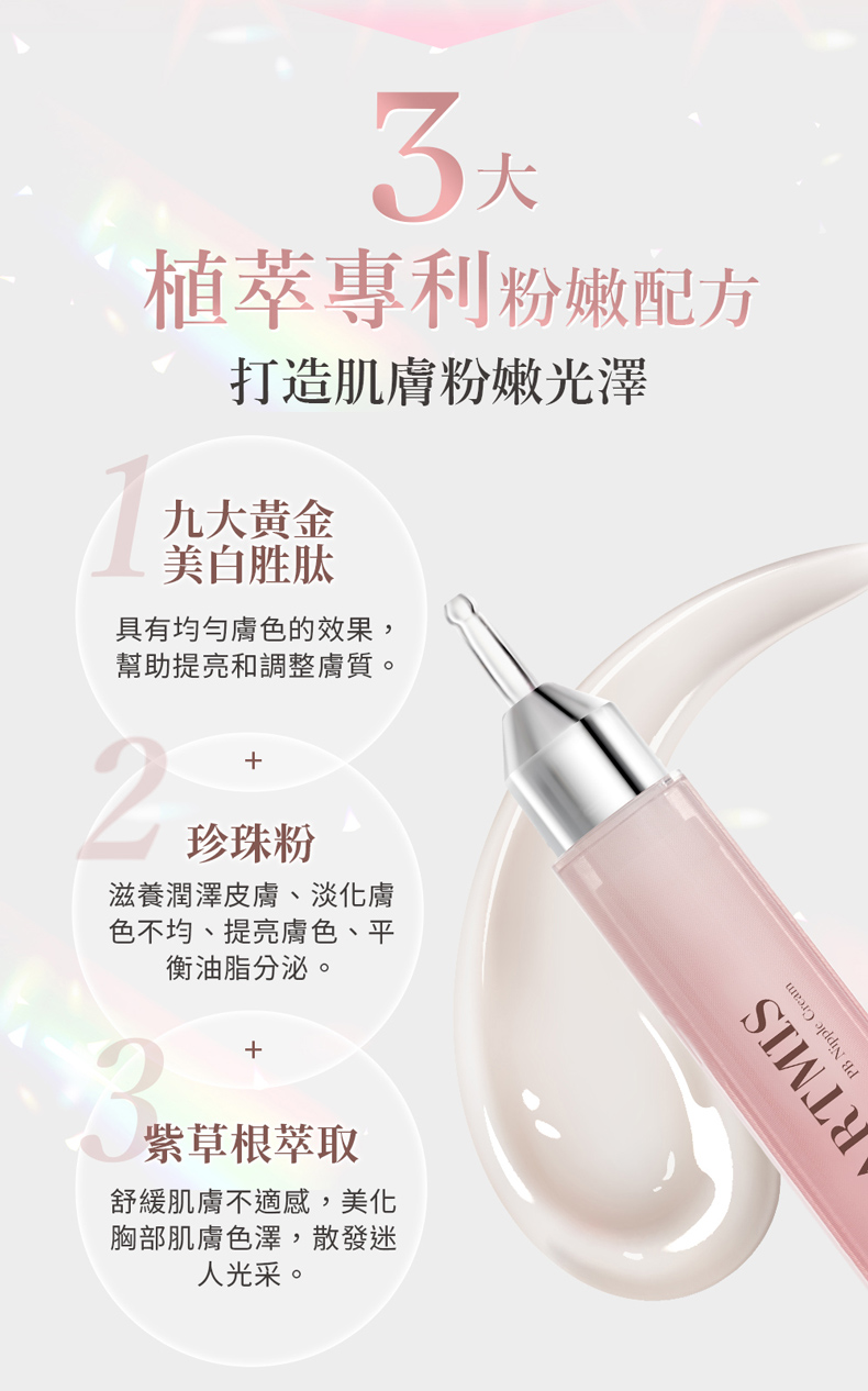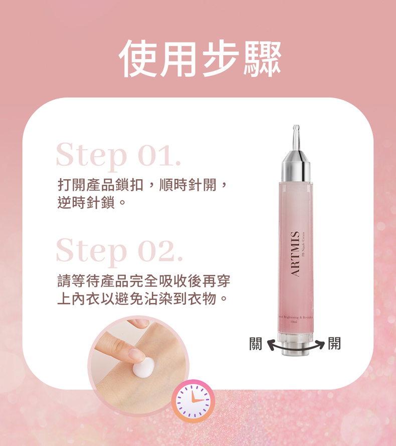 使用說明:按壓出適量精華後,塗抹於乳暈部位,輕輕按摩後即可穿上內衣。