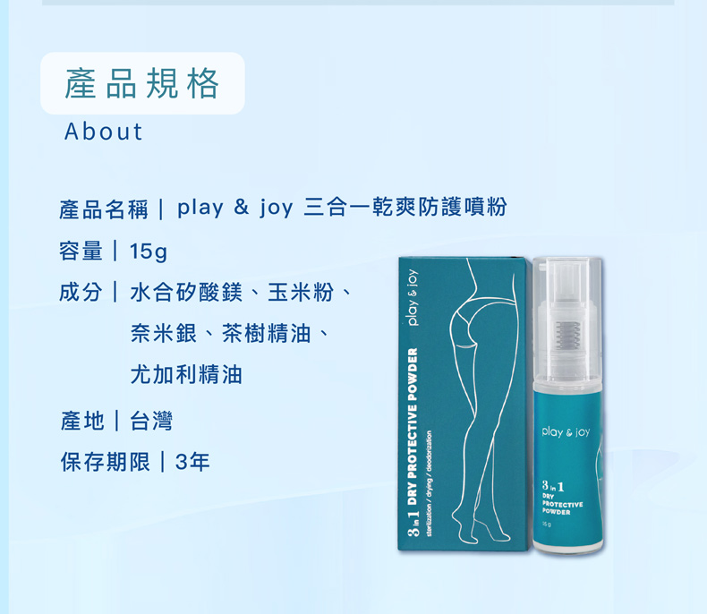 產品名稱:Play&Joy三合一乾爽防護噴粉