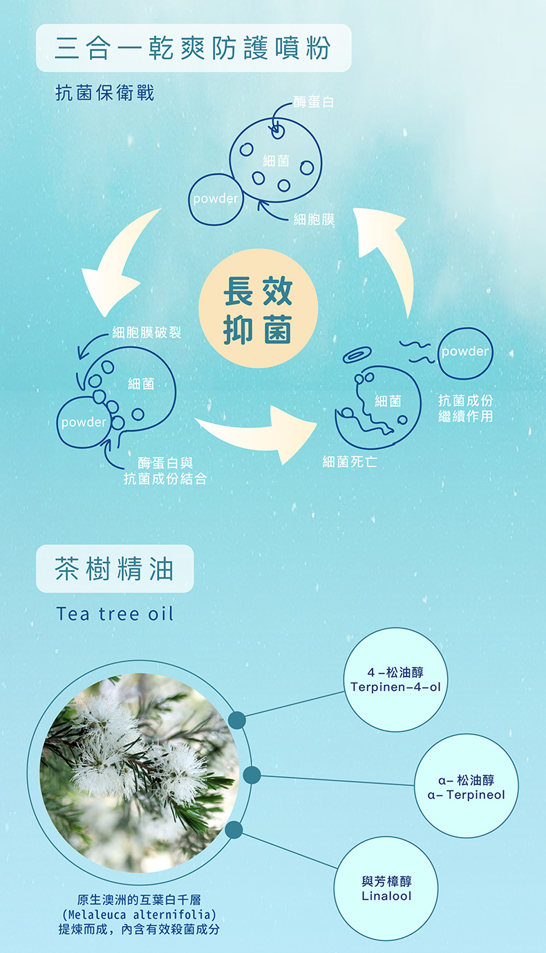 - 茶樹、尤加利精油乾粉,超長效作用讓私密處健康乾爽芬芳