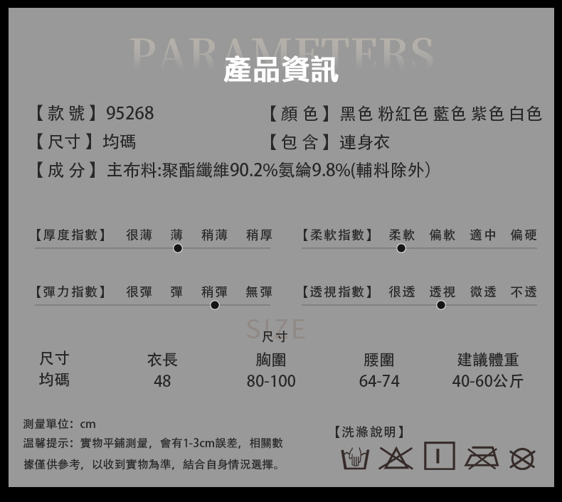 材質聚酯纖維、氨綸